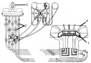 Rodzielacz pary ma przy końcu przewodu podawczego 16 otworów nawierconych pod odpowiednim kątem. Połączone są one w 5 grup, a każda z nich obsługuje odpowiednią część rusztu. Narzucanie węgla następuje przy pomocy silnego strumienia pary wyrzucającego w odpowiednim kierunku kawałki węgla podawane przez śrubę. Dopływ pary do każdej z grup otworów reguluje odpowiedni zawór. Oprócz tego pomiędzy rozdzielaczem pary a kotłem znajduje się jeszcze główny zawór, którego zadaniem jest odcinanie dopływu pary do całego urządzenia.