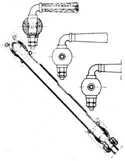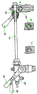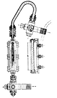Ustawienie rączek kurków w górę (C), powoduje ułożenie kulek w takim punkcie, że ani woda ani para nie mogą ich porwać. Wówczas można przedmuchać wodowskaz. A tego dokonuje się w sposób następujący: